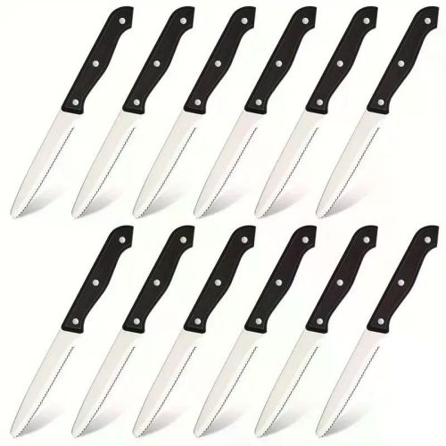 Steak Knives Set of 12, Serrated Steak Knives with POM Three Rivets Handle, Dishwasher Safe, for Family, Party, and Restuarant