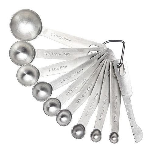 Measuring Spoons: U-Taste 18/8 Stainless Steel Measuring Spoons Set of 9 Piece: 1/16 tsp; 1/8 tsp; 1/4 tsp; 1/3 tsp; 1/2 tsp; 3/4 tsp; 1 tsp; 1