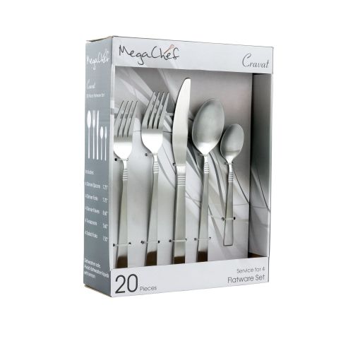 Home > MegaChef Cravat 20 Piece Flatware Utensil Set, Stainless Steel Silverware Metal Service for 4 in Matte Silver