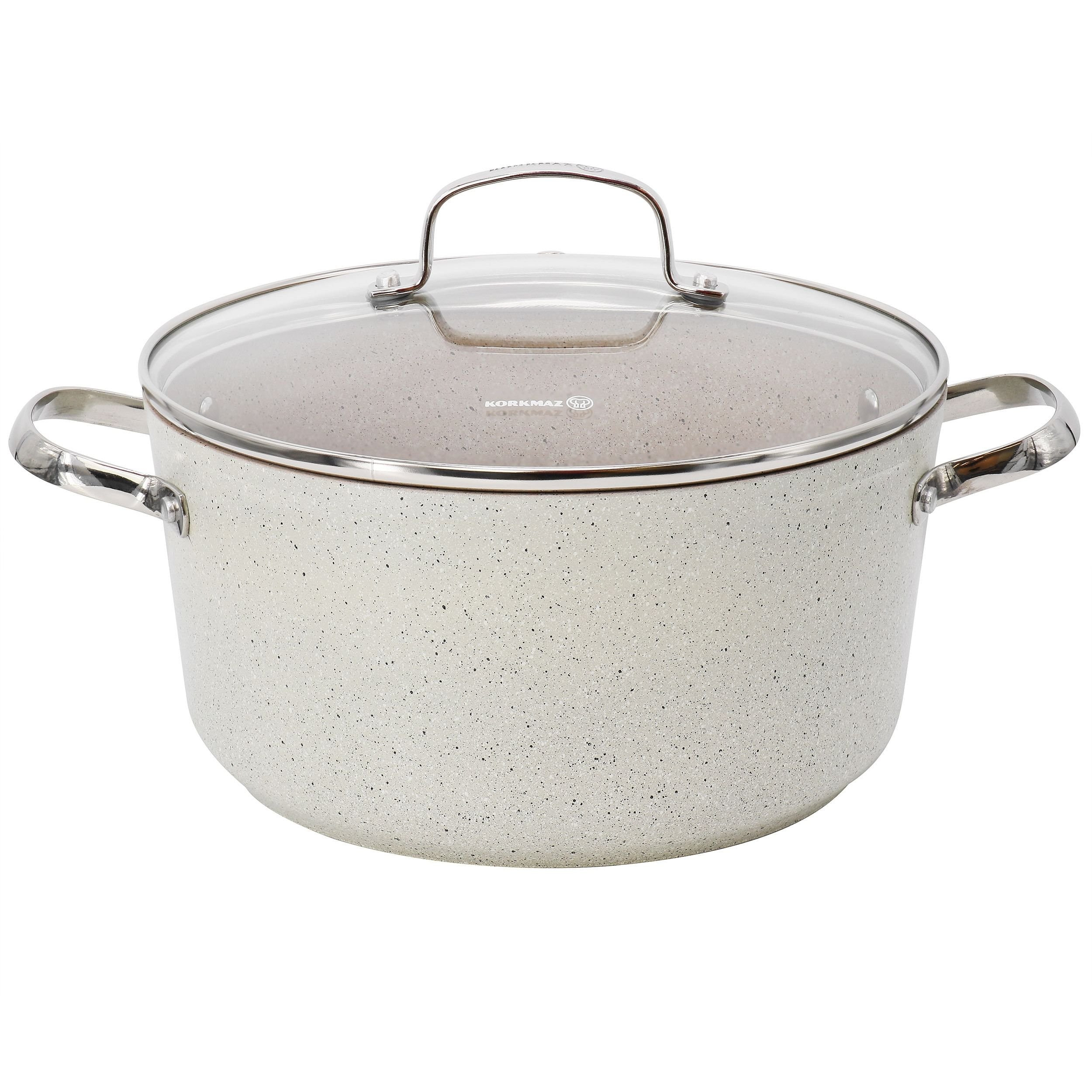 Korkmaz Granita 8 Liter Aluminum Nonstick Casserole with Lid in Tan