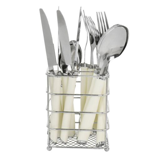 Gibson Everyday Fairfield 16 Piece Flatware Set with Wire Caddy in Egg Shell