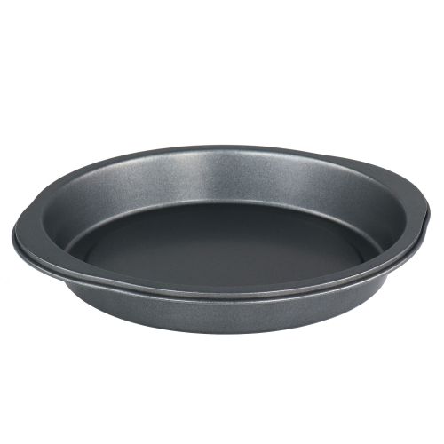 Meet all your baking needs with this Simply Essential 9 Inch Nonstick Round Aluminum Cake Pan. The 9 inch diameter is the perfect size for standard cakes and being oven safe up to 410 degrees Fahrenheit (210 C), this pan is suitable for most recipes. Small handles on each side allows for easy picking up and handling. The aluminum construction makes for optimal and even heating so your cakes come out baked just right and the nonstick coating will make sure your cakes pop out with ease. To ensure proper usage for years to come, hand wash only.