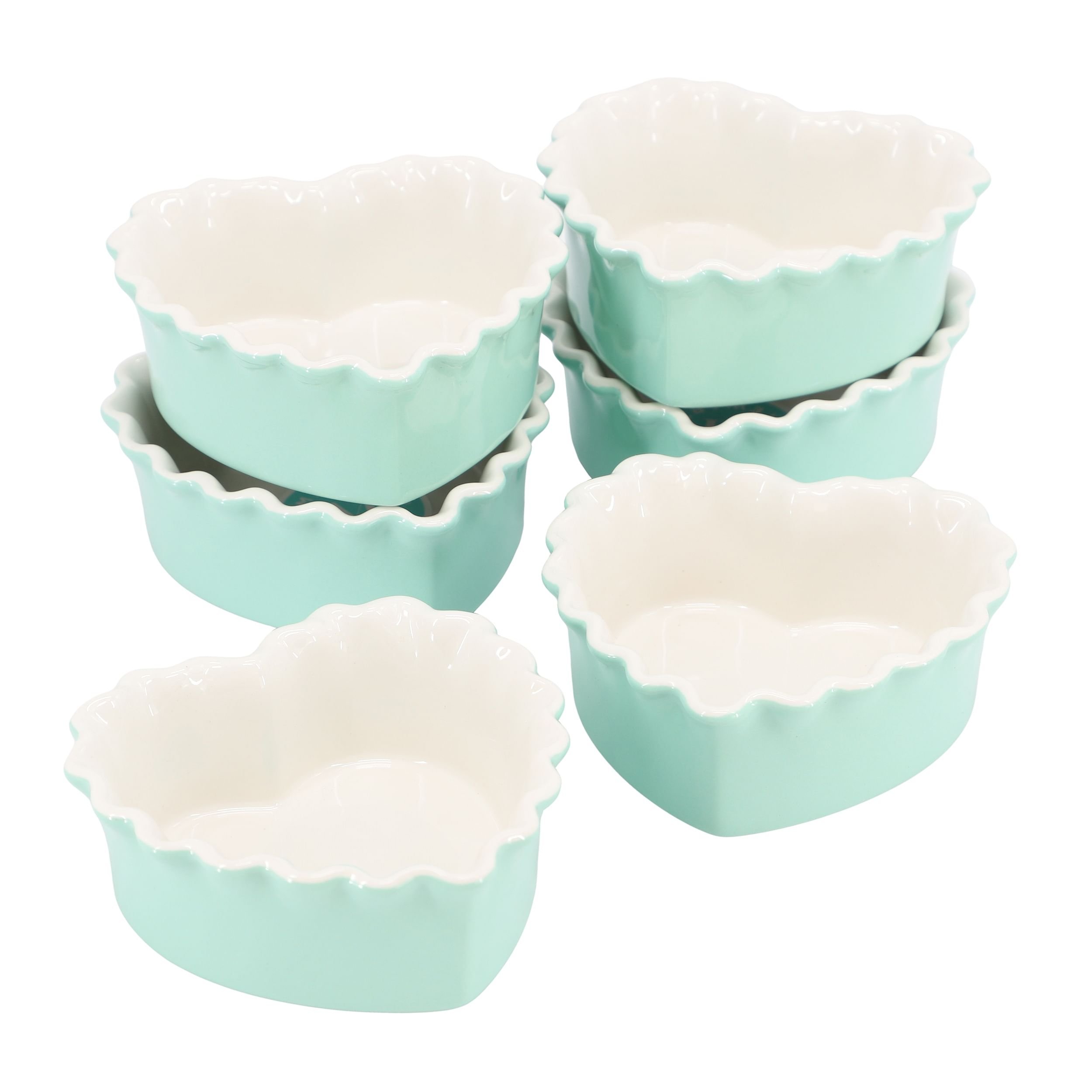 Martha Stewart Hartley 6 Piece 4.1 Inch Stoneware Heart Shape Baker Set in Blue