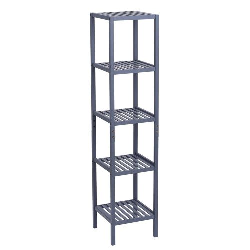 5-Tier Bamboo Shelf Free Standing Bathroom Tower Rack Corner Rack Multi-Functional Storage Organizer Unit