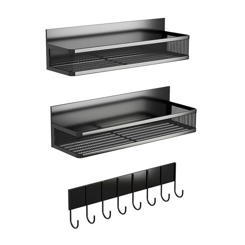 *3 Tier Storage*:The large or medium seasoning rack is ideal for storing sugar,salt,olive oil,spices,pepper or other small items while the hook shelf with 8 hooks is perfect for holding scissors,measuring cups,spoons,oven mitts,keys etc..
